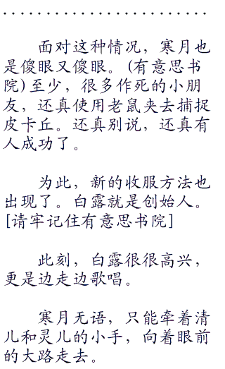 白露直接跳出来:“太好了,太好了。我收服电松鼠了,收服电松鼠了!”