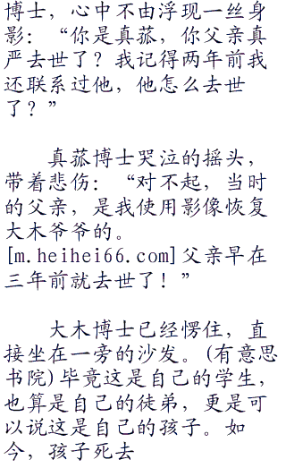 真菰博士看着屏幕之中大木博士,带着丝丝的悲伤:“大木爷爷,我父亲....17我父亲他已经去世了!”
