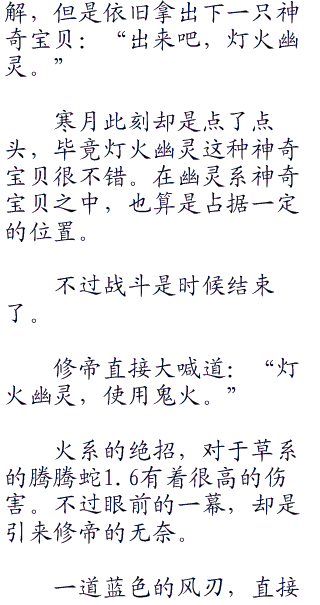寒月无奈,但是滑头小子的这些话语,完全就是一个神技。什么神奇宝贝,只要失去理智没有训练节家的指挥,那就是一个强大的野生神奇宝贝。