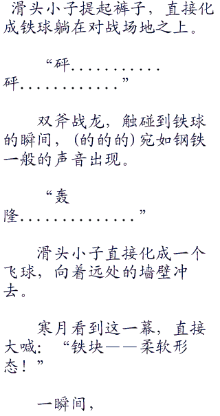 寒月训练滑头小子,着重训练滑头小子裤子的防御力,毕竟滑头小子的裤子也是身体的一部分。如此一来,滑头小子很容易学会铁块,更是顶尖的铁块。刚柔并济的铁块。