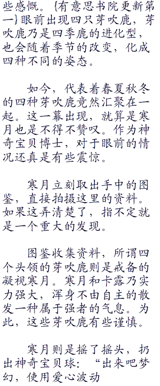 寒月行走,凌厉的双眼扫视四周。这里的神奇宝贝倒是蛮多,不过这里的神奇宝贝也有些意思,基本都是温顺的神奇宝贝。
