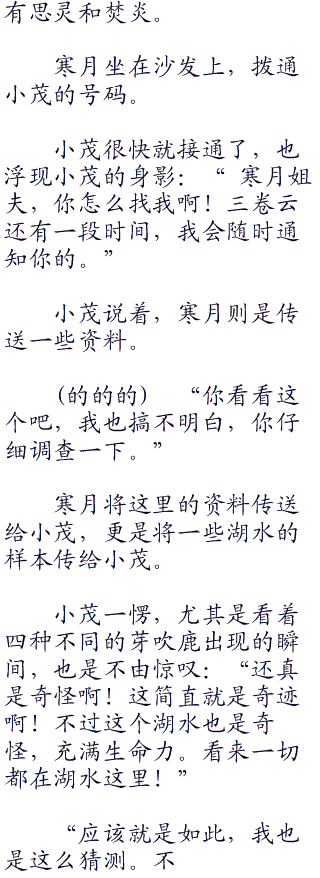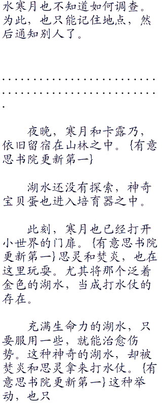寒月微微一笑,浑身的波导想着眼前的湖水探索。