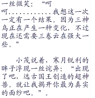 三卷云化成野兽形态,化成的绝招终究抵消三神鸟的雷电。