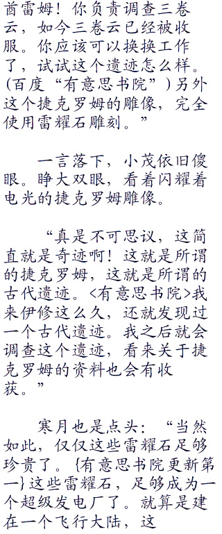 这一刻,寒月才注意到眼前的雕像。使用雷耀石雕刻的石像,捷克罗姆的石像缓缓的闪耀着电光。