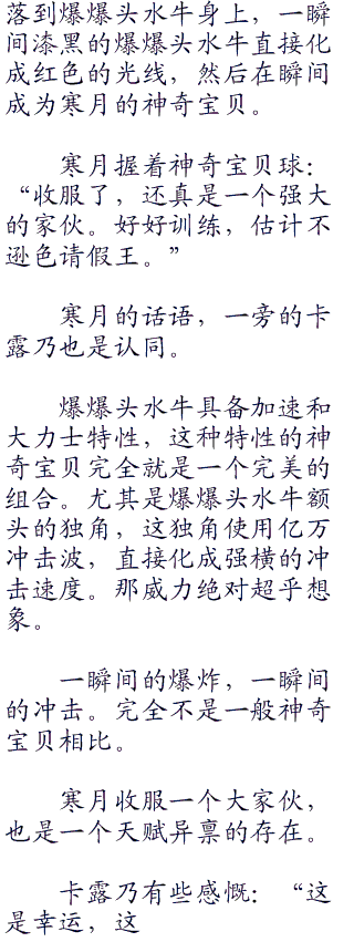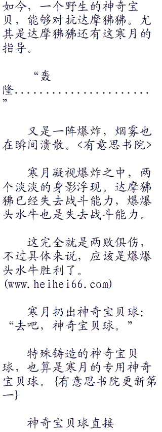 寒月微微一笑:“总算止住你的速度,速度被限制,那么冲击力也不会这么强大。如“零零零”今这种强大的冲击力被限制,这场战斗也算是我赢了。”