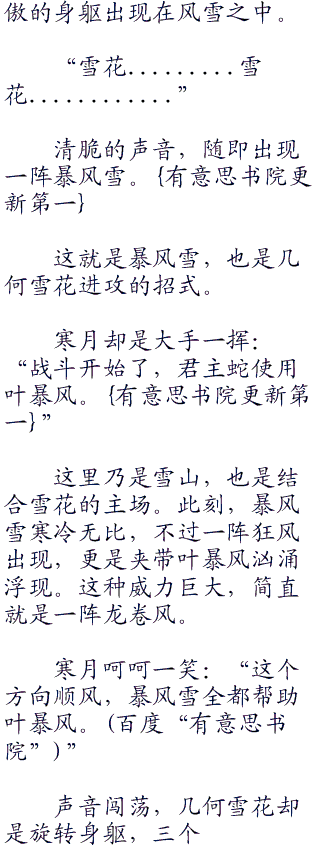 地面的雪花之中,缓缓浮现一个蓝色的身影。蓝色的身影和苍白的大雪不同,蓝色的身影很是明显。