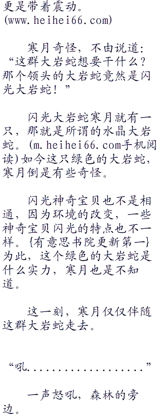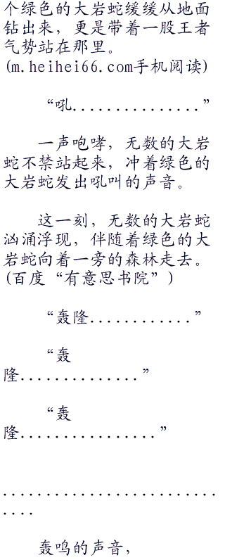 大岩蛇吩咐在关东,成都,芳缘...........这些地区大岩蛇都有分布。伊修地区很少出现大岩蛇,如今一个海上小岛却是出现大岩蛇,更是传闻有着奇特的大岩蛇。对此,寒月很是惊奇,不过却没有多少感触。