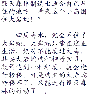 卡露乃奇怪,寒月则是无奈的摇头:“这里的环境适合大岩蛇生长,为此这里大岩蛇众多。打野社也霸占了这个小岛。就算是大岩蛇不喜欢森林和沙滩,这个小岛的一切也会被大岩蛇掌控。估计其它神奇宝贝,全都被赶走了吧!”