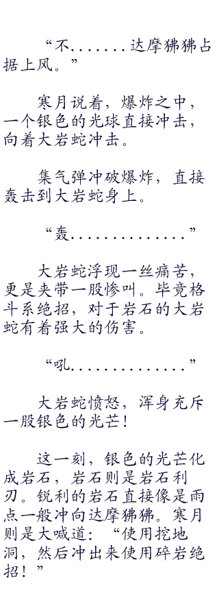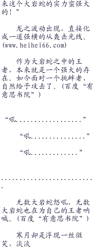 寒月将小岛的一切告诉小菊儿,更是将眼前大岩蛇毁灭森林的一幕发给小菊儿。小菊儿也是无语了,貌似这种情况还是第一次发现。