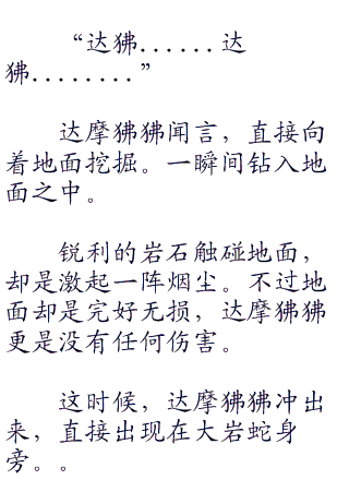 达摩狒狒出现,直接落到地面。寒月直接指着绿色的大岩蛇:“达摩狒狒使用吼叫!”