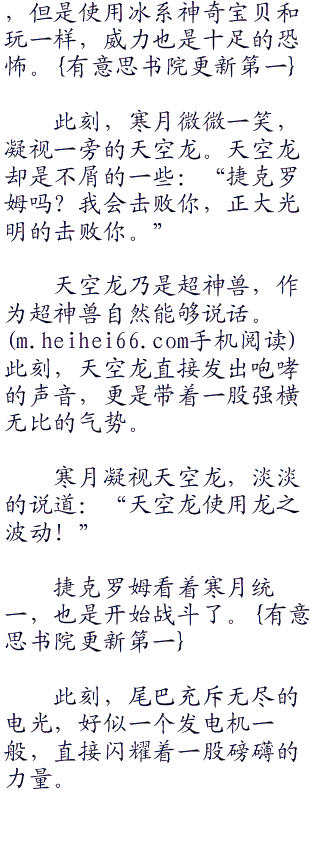 寒月微微一笑,淡淡的说道:“如何.....这个寒冰的滋味。如果仅仅使用天空龙一只战斗,你也绝对会失败。洛奇亚仅仅为了面对另外一只超神兽,也就是白龙雷希拉姆。”