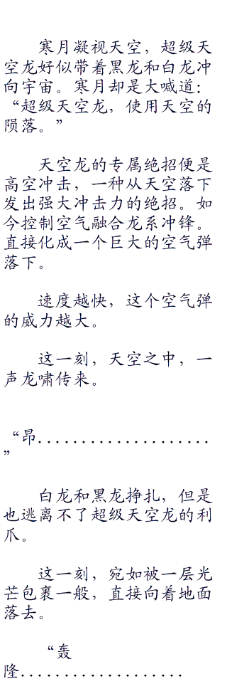 寒月能够肯定,大地正在遭受肆虐。两只天空龙绝对抵挡不住这个余波。
