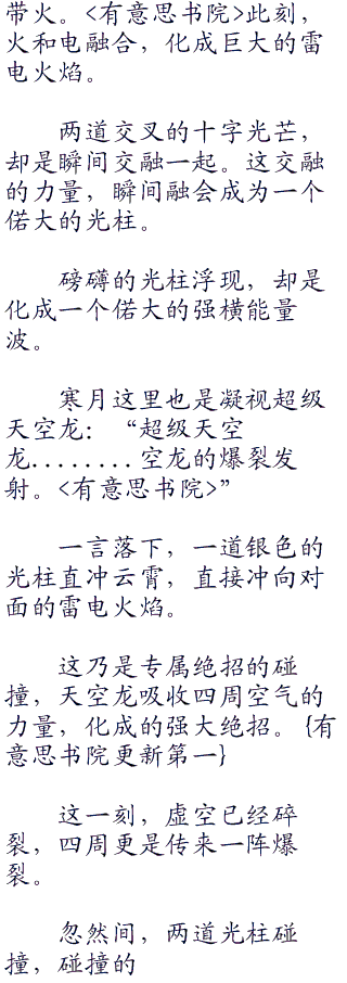 黑龙的‘十字交叉雷电’乃是电系绝招,不过造成的效果却是火系效果。