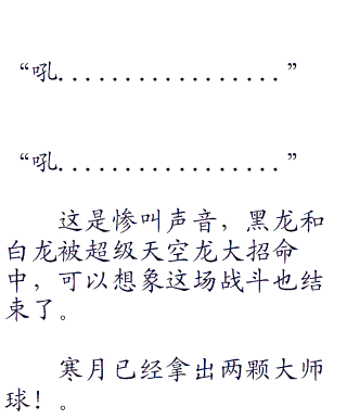 寒月微微一笑,淡淡的说道:“白龙,黑龙!你们的绝招呢..?”