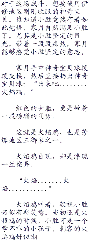 寒月微微一笑,淡淡的说道:“给我训练去,要是再给我战斗,我将你们暴虐一顿,然后送入小黑屋。”