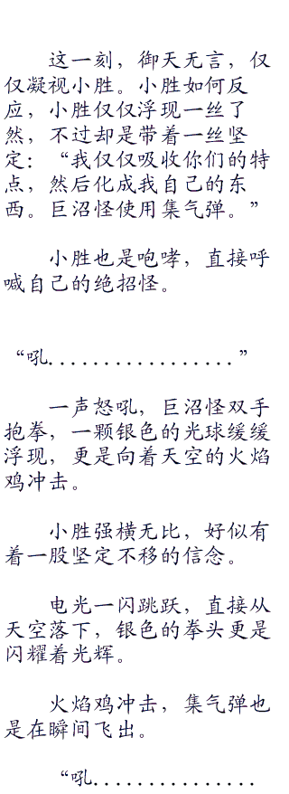 小胜一愣,却是急忙大吼:“绝招怪防御住!”