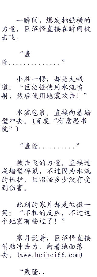 小胜已经大吼道:“巨沼怪使用水炮!”