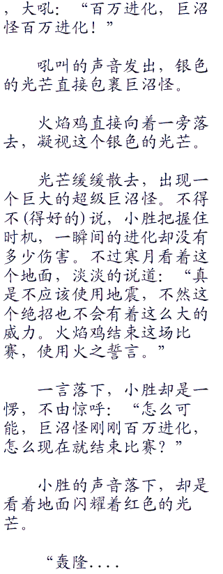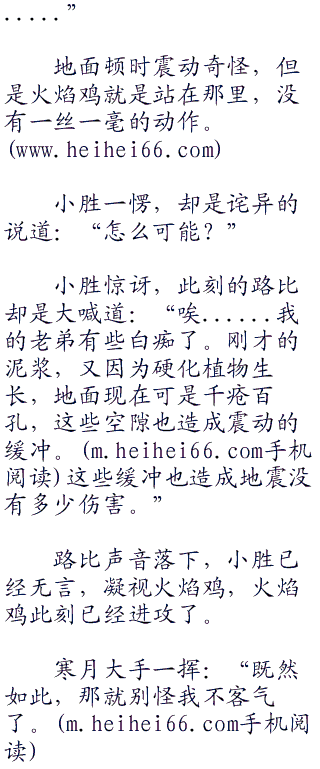 此刻,小胜诧异的凝视寒月,寒月却是扔出神奇宝贝球:“出来吧,火焰鸡!”