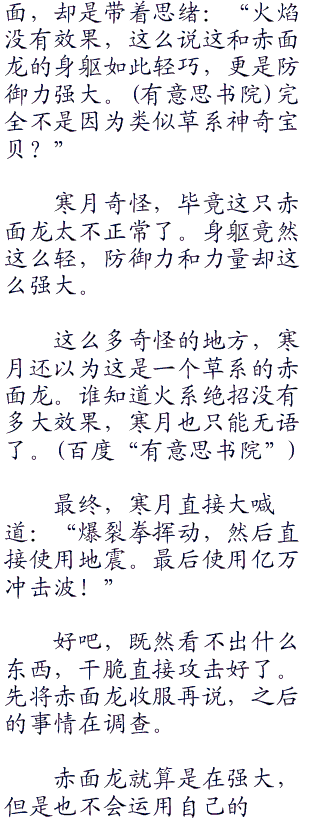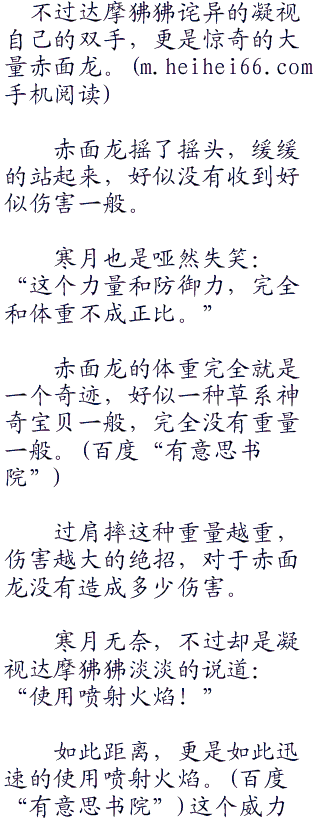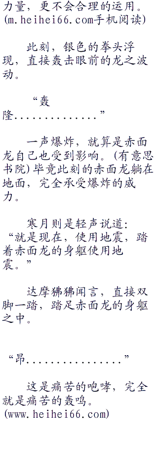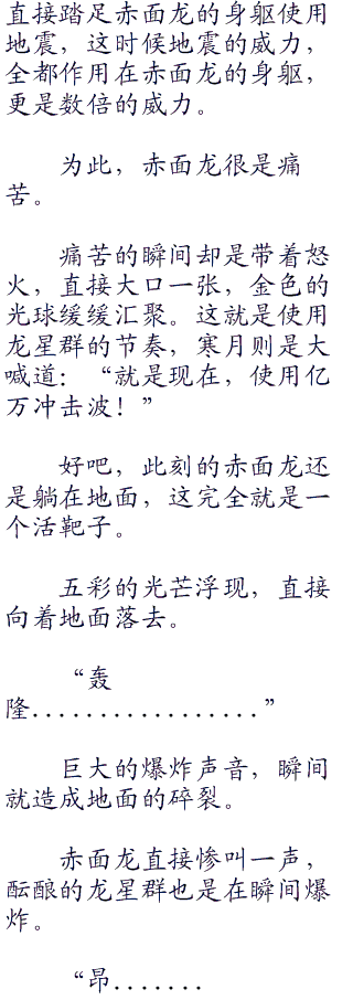 一击之下恐怖如斯,这威力,这力量.........不得不说,这只赤面龙的力量真是强大无比。