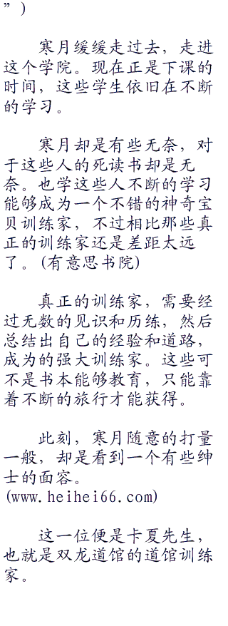 寒月也是随意的打量,不过目光却是放在双龙道馆。
