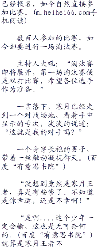 寒月凝视这个即将开始的联盟的大会,缓缓的走进会场:“我们走吧......我很期待这一次对战!”