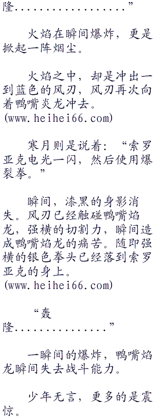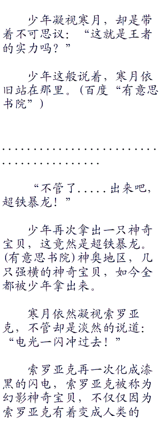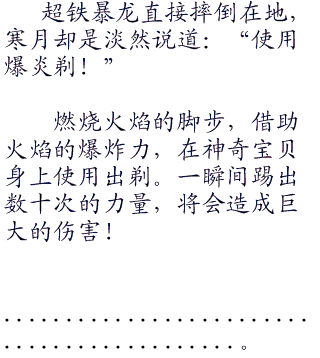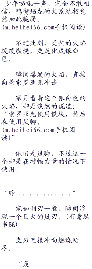 寒月微微一笑,淡然的说道:“鸭嘴焰龙吗?索罗亚使用岚脚,切断喷射火焰,然后使用岚脚攻击!”
