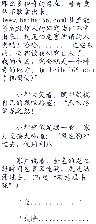 神奇宝贝也是一样,适者生存,不适者淘汰,弱肉强食。这就是神奇宝贝,这就是这个世界。哥哥就是那个强者,弱者全都是所谓的食物。普通的神奇宝贝也绝对比不过高贵的种族。神奇宝贝之中,除去那些变异,那些闪光........也只有准神能够站在巅峰。超神兽和神兽,这些不过是占据先天的优势。我绝对不信哥哥把这种垃圾,化成超乎种族的存在!”
