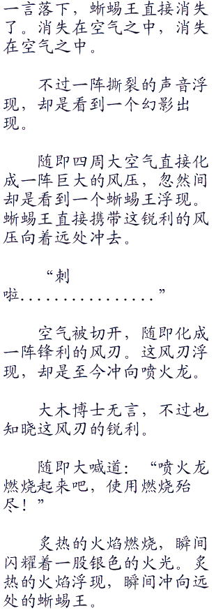 强大的火焰爆发力,瞬间发生一阵爆炸。火焰的助推力直接冲向蜥蜴王。