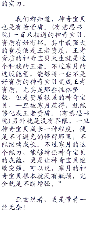 寒月却是一笑,有些时候却是蛮打击人。寒月的神奇宝贝可不是普通的神奇宝贝,都是经过自己灵气淬炼的神奇宝贝,强横的神奇宝贝完全就不是这些人能够想象的存在。