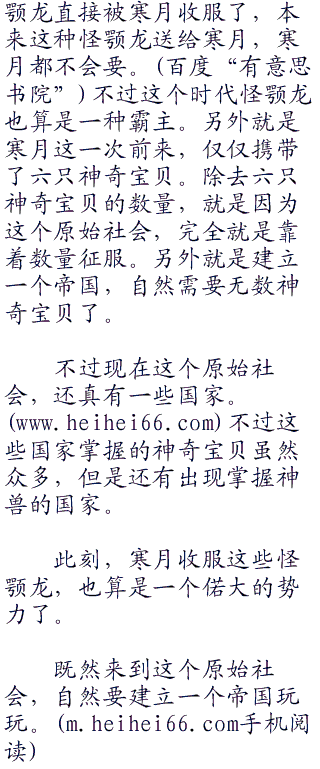 也许一些强大的部落,一些人会驯服一些神奇宝贝。不过驯服神奇宝贝的存在都是少之又少,就算是被驯服了,也仅仅是一些普通的神奇宝贝。也仅仅那些建立帝国的存在,会收服一个强大的神奇宝贝。甚至一些驯服一些超神兽,或者和一些超神兽结成契约。