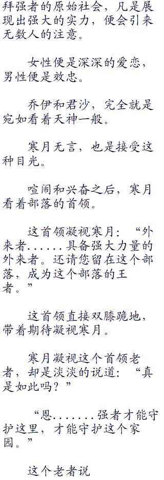 寒月站在那里,一旁的君沙却是抱着寒月:“寒月哥哥.......请你救救部落吧!”