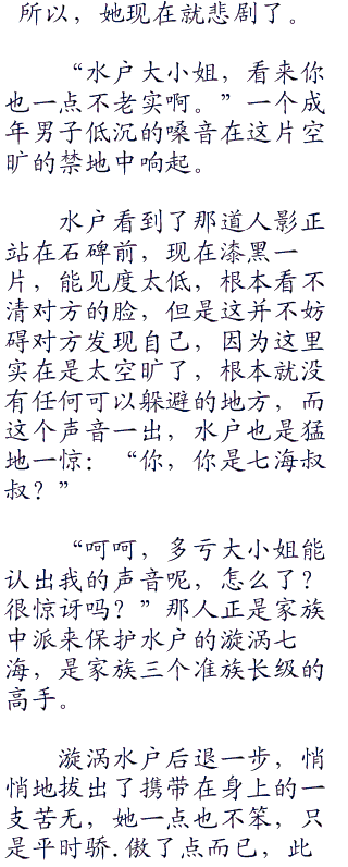 “可是,七海他一直都对那个地方”旁边的漩涡流云依旧担忧。