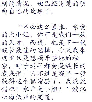 “是,族长。”漩涡流云立刻闭嘴,领命而去。