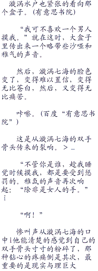 几乎是下意识的,漩涡七海朝着盒子里面伸出了双手,要在第一时间那到其中的宝物。