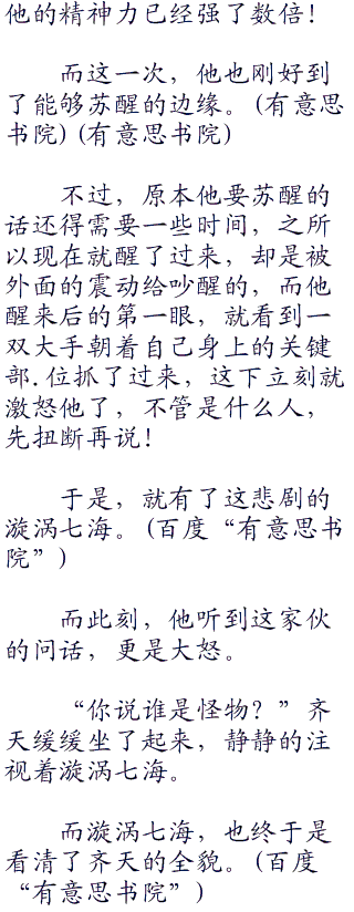 漩涡七海突然看向了倒在一旁的漩涡水户,又伸手将她抓了过来,掐着她的脖子叫道:“快说,你爷爷是不是告诉了你解开封印的方法?!”