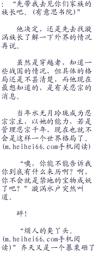 “唔,大混战么。”齐天看着漩涡水户那一头红色的长发,似乎想到了什么,问道:“你是漩涡一族的吧?刚才那个人和你什么关系?”