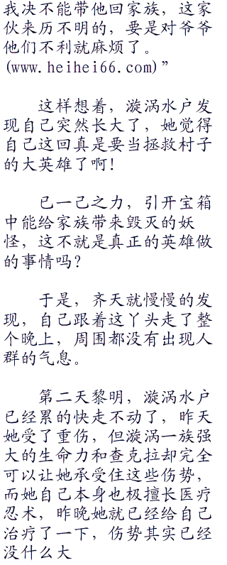 水户点点头,愤愤的看了那边的漩涡七海一眼,看着齐天说道:“我叫漩涡水户。他和我都是漩涡一族的人,但他觊觎禁地宝物,想要杀死我,简直是太可恶了!”
