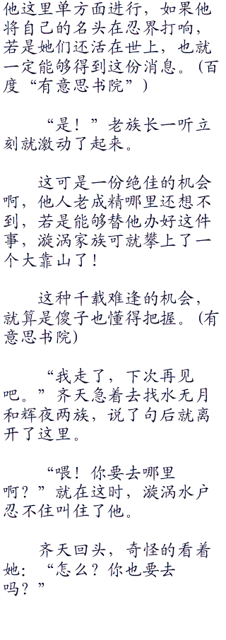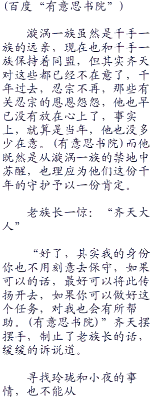 趁着齐天换衣服的时候,漩涡水户拉住她爷爷,小声的问了起来:“爷爷,你知道这家伙到底是什么来历吗?”