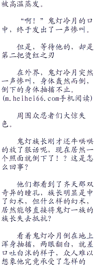 而他的身体,正从脚下开始,被大火炙烤着,他的皮肤已被烤成焦黑,竟散发出一丝丝肉香