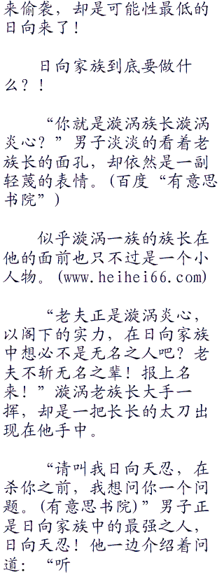 “什么?日向一族?!”老族长吃了一惊:“日向一族远在大陆的东面,他们中间还隔着羽衣一族,再过来还有千手和宇智波,怎么可能会有空来袭击我漩涡一族?”