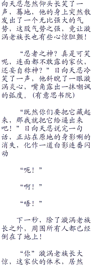 那人急忙答道:“看他们衣着好像是日向一族的人!”