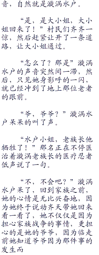 “现在各大家族爆发了战争,爷爷他们也派了忍者上了前线,我担心家族那边会有危险。”漩