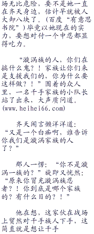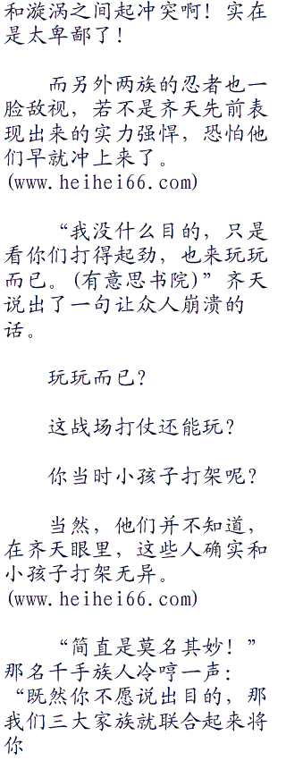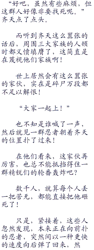 起先,大家还以为齐天是千手一族的人,毕竟他身上穿着漩涡一族的衣服,但后来当他们发现这家伙连千手族人也干的时候,全都有些懵了。
