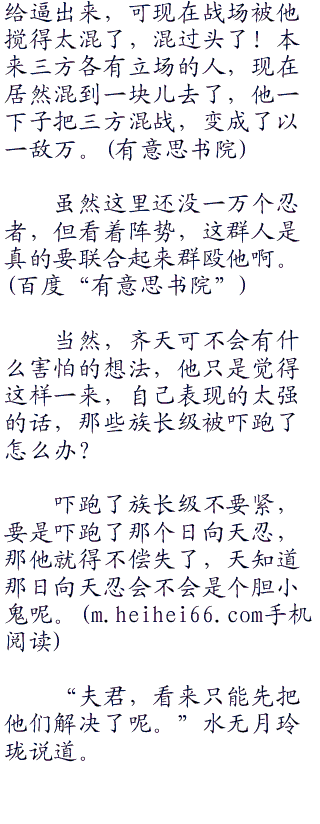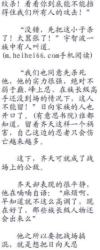 当听到这个消息的时候,日向天忍怒哼一声,直接奔赴了战场。
