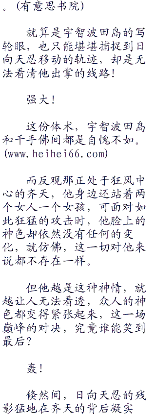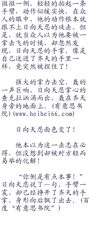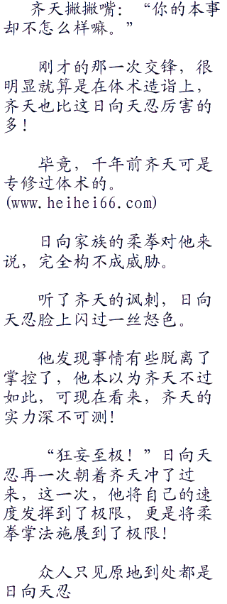 “哼,自我陶醉的家伙,马上就让你知道什么是天外有天,人外有人!”日向天忍长笑一声,忽然朝着齐天冲了过来。