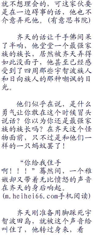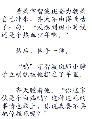 他觉得,如宇智波田岛这样的身份,就算是死,也应该死在和他千手一族征战的战场上,或者是死在他的手里,那才是他最好的归宿,可现在,他被齐天这个完全不知道来历的人虐成狗一样的凄惨,最后还要被当做垃圾一样的杀掉,这让他的心里很不舒服。