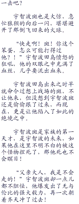 千手佛间现在的心情其实很复杂,对宇智波田岛,他心中竟然有了一丝同情,没错,是同情,作为两个生死相对的家族的族长,他居然对田岛产生了同情。