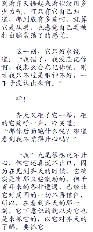 毕竟,九尾妖狐作为尾兽,对人类是有着非同寻常的憎恨之情的,而齐天身为人类,想要染指九尾妖狐,那就势必要迎来九尾妖狐的攻势。