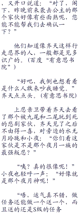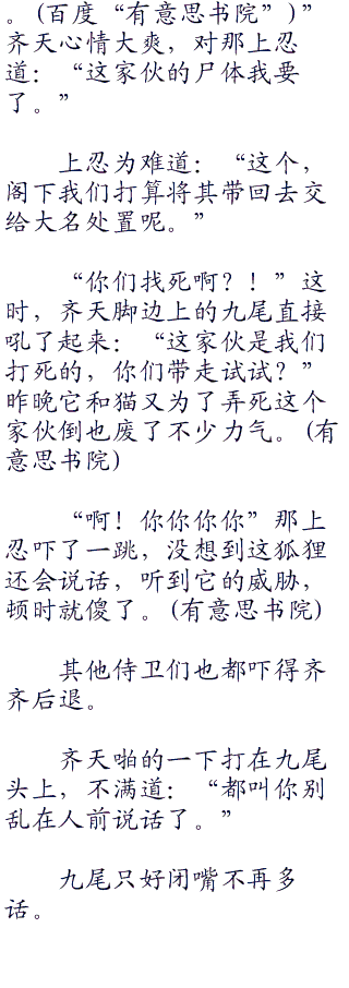 那名上忍看着齐天欲言又止,似乎是想提醒一下齐天身边的那两只动物的危险性。