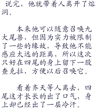 而现在,齐天一下子就把对方的强者放倒了,二尾自然也就没了顾忌,直接化身为巨大的猫妖。